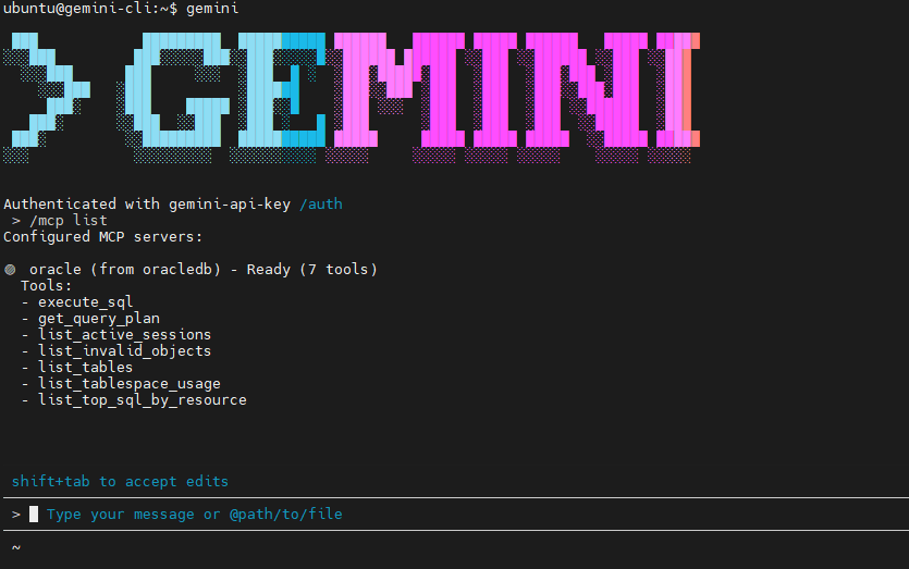 Now if we run gemini again, we are able to find the tools for the Oracle MCP!