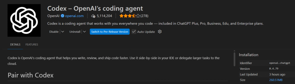 As I’m using Windows, I’m going to use Codex via Visual Studio Code extension. The first step is to install it.
