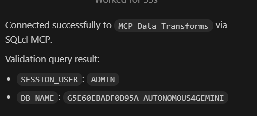 IMPORTANT: Remember always to validate the code the AI is generating before you put it in production. I haven’t seen an official documentation stating that Oracle supports the MCP with Codex, but the integration using the MCP standard is very easy to use!